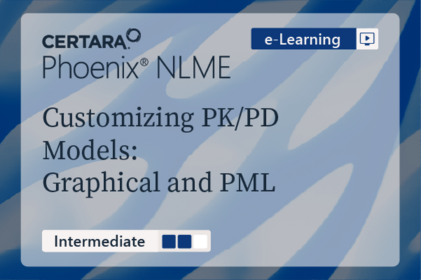 Cost - $500 (Academia $250, Africa/India $125) Course Description This course is intended for Phoenix users who want to extend beyond library models, to model their own data. It provides a solid foundation and a structured approach to model building, to create your own PK and PK/PD models. This highly practical course gives an accelerated introduction to customizing models with both the Graphical and Textual model editors in Phoenix. It assumes that you have ideas for PK and/or PK/PD models that you want to construct, and you mainly need to know how to implement them in either the Graphical or Textual modes. The course includes a basic introduction to PK/PD modeling and population PK modeling. There are about 3 hours of video in the course, plus interactive exercises. You should expect to spend about 12 hours of work to finish. You will have access to this course for a period of 3 years after purchase. If you are an academic user, please contact us so we can update your account profile to give you access to academic pricing. Note that you must register with an email address that is associated with an academic institution to get academic pricing. If you are located in Africa or India, please contact us so we can so we can update your account profile to give you access to the Africa/India pricing. You will need to provide proof that you are physically located in India to get the pricing. Prerequisites Learners who take either the e-learning course (100-OD) Introduction to Phoenix WinNonlin or the live online course (123-LO) PK Modeling and Simulation using Phoenix WinNonlin should have sufficient background to take this course. Alternatively, learners should have knowledge/skills in the following areas: Knowledge of basic concepts of PK models Using Phoenix PK Library models (i.e., using the built-in options) Obtaining initial estimates for PK models (using NCA or other methods) Evaluating the fit of PK models Other Related Courses The following courses provide a deeper theoretical background, and provide a good complement to this course: (200-OD) Intermediate PK/PD Modeling using Phoenix WinNonlin (201-OD) Intermediate Population Modeling using Phoenix NLME Read more