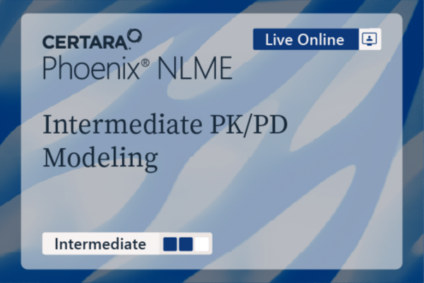 November - December 2026 Cost - $550 (Academia $275, India $150) Course Description The objective of this intermediate course is to consolidate knowledge of PK/PD concepts and advance to performing more complicated PK/PD modeling using Phoenix WinNonlin and Phoenix NLME. You will learn how to customize your own models beyond library models, how to interpret and present your results, perform simulations, and how to deal with different types of covariates such as occasion covariates, and much more. This course will also cover pharmacodynamic concepts and examples. Many case studies will be presented (please see agenda below). If you are an academic user, please contact us so we can update your account profile to give you access to academic pricing. Note that you must register with an email address that is associated with an academic institution to get academic pricing. If you are located in India, please contact us so we can provide a coupon that will give 75% off the full price of the course. You will need to provide proof that you are physically located in India to get the coupon. Course Format, Language and Dates This course format is as a ‘Live on-line classroom’ which means that the course is delivered virtually by an expert Phoenix instructor at pre-specified times. This format provides the benefit of the classroom setting, with real-time interaction with the instructor but without the travel. Although live attending is encouraged, recordings of the sessions are available to participants during the length of the course. You will have access to the recordings for 3 months following the last session of the course. This course will be delivered in English. Lecture/Demo Sessions Live Zoom sessions will occur in November and December, 2025. There will be six two-hour lecture/demo sessions. Lecture/Demo sessions are on Tuesdays at 10 AM New York (GMT-4), starting 4 November and finishing on 16 December. We will record sessions and post the recordings for those who are unable to attend live. You will have access to the recordings for 3 months following the last session of the course. Self-Paced Exercises There are five self-paced exercises in the course that guide you through exploratory data analysis, data preparation, and noncompartmental data analysis. You do not need to run Phoenix to do the self-paced exercises, because everything is contained in the module. Each practice exercise contains a quiz that you must pass with at least a 60% score, although you can repeat each quiz as many times as you need to pass it. Hands-on Exercise Sessions There are also five weekly "Hands-on Exercise" Zoom sessions that give you the opportunity to carry out the same analysis as in that week's "Self-Paced Exercise", working collectively in Phoenix. You will be divided into small groups, and will work together on the exercise. At least one in each group will need to have Phoenix running on their computer and have an active WinNonlin license. Hands On Exercise Session Option A is offered at times most convenient for participants in the Americas, Europe, and Africa. They are on Fridays at 11 AM New York (GMT-4). Hands On Exercise Session Option B is offered at times most convenient for participants in Asia/Pacific. They are on Tuesdays at 2 PM Brisbane (GMT+10). (FYI, 2 PM Tuesday in Brisbane is late Monday evening in New York.) Prerequisites and Time Commitment Good knowledge of PK/PD concepts including compartmental models for both individual and population. Experience with the functionality of Phoenix WinNonlin and Phoenix NLME software. Prerequisite background courses or similar experience include: [(123-LO) PK Modeling and Simulation and (124-LO) Introduction to Population Modeling] or [(100-OD) Introduction to Phoenix WinNonlin and (101-OD) Introduction to Population Modeling] Students are expected to be able to commit 5 hrs a week to attend sessions and complete assignments. Software Phoenix WinNonlin and Phoenix NLME Participants are expected to have a current license to Phoenix WinNonlin and Phoenix NLME. If a 60-day software license is needed one can be provided for an additional fee. Contact us if you want to order a license. Certara Professional Certification [Optional] Participants may opt to pay a fee ($50) to obtain an additional professional certification as a Level 1 Pharmacometrician. This certification requires passing an exam that this course will give you the sufficient knowledge to pass. Contact us to add this certification to this course registration. Click here for more details on Certara Professional Certifications. Read more