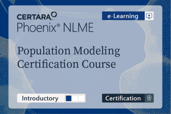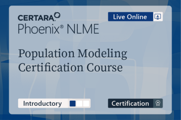 Cost - $575 (Academia $275, Africa/India $150) Certification Course Description The objective of this course is to learn how to perform population PK using Phoenix NLME. Population PK/PD modeling is being used increasingly in regulatory submissions. Population PK modeling can handle sparse data and also data combined from several studies. The population approach estimates the variability between subjects in the PK parameters and can help you understand potential sources of PK variability. Through a series of practical exercises, learners will create population PK models, add covariates to models to help explain and quantify individual variation, and validate their models using bootstrap and VPC. Learners will become familiar with the theory necessary to make effective use of population modeling. You will have access to this course for 3 years. No manual or printed material is associated with this course. Pricing Cost - $575 (Academia $275, Africa/India $150) Users requesting an Academic membership will only be accepted with proof of academic status by using an active academic email address. Users from Africa/India will need to provide Certara University with a copy of their government issued proof of residency. If an email address fails to meet that standard, the individual will be notified and will not be given access to the requested membership type. Course Format, Language and Dates This course format is 'e-learning', which means that you can take the course at your own pace. The course materials include recorded lectures and interactive tasks. You will be asked to carry out tasks in a simulation of Phoenix. You will interact by clicking and entering text. Although it will look and feel like you are interacting with Phoenix, the simulation is not a real instance of Phoenix. It can only go through the task that was assigned. This course audio is in English, with closed captions that can be turned on or off. Certification Exam This course includes a certification exam. To obtain credit for this course and earn a Certara Certification as a PK/PD Modeler using Phoenix WinNonlin version 8.4 or 8.5, candidates need to earn a passing score on the exam. The exam validates proficiency and competence with Maximum Likelihood Models in Phoenix WinNonlin. Exam Details Software: There is no requirement to have the Phoenix NLME™ software installed to take the exam. The exam has interactive questions embedded that simulate the software. Those interactive questions are based on Phoenix NLME 8.4 or 8.5. Grading: To successfully earn the Population Modeler certification, a minimum passing score of 75% must be achieved on both parts of the online accreditation exam. Each registration includes 2 attempts at passing each part of the test. The exam tests 80-90 questions that cover theoretical knowledge of population modeling, and a practical section that evaluates software proficiency with population models in Phoenix NLME. Time Limit: The exam is divided into 2 parts. There is a time limit of 1hr 45min to complete part 1, and 1hr 15min to complete part 2 of the exam. The clock starts counting when the user clicks on 'Start Exam' in each part. Exam Content: Successful candidates should be able to use Phoenix NLME to create population models, including covariate analysis, covariance analysis, model validation, and simulation. Exam topics include: Population PK Theory Data Preparation Exploratory Data Analysis Model Development Covariate Models Covariance Models Model Comparisons Model Validation (VPC and Bootstrap) Reporting Population Model Results Prerequisites and Time Commitment Fundamental knowledge of PK/PD concepts including basic compartmental models. Familiarity with the functionality of Phoenix WinNonlin software. Recommended background courses include: (103-OD) Fundamentals of Pharmacokinetics either (122-LIVE-CERT) or (122-OD-CERT) Phoenix WinNonlin (Part 1) NCA Certification Course either (123-LIVE-CERT) or (123-OD-CERT) Phoenix WinNonlin (Part 2) PK/PD Modeling Certification Course The course provides approximately 6.5 hours of video instruction which includes a practical component that you can do at your own pace. It is expected to take participants about 24+ hours to complete, including time to perform the tasks in Phoenix. Software Phoenix WinNonlin and NLME Participants are expected to have current licenses for both Phoenix WinNonlin and Phoenix NLME. If a 60-day software license is needed one can be provided for an additional fee. Contact us if you want to order a license. Read more