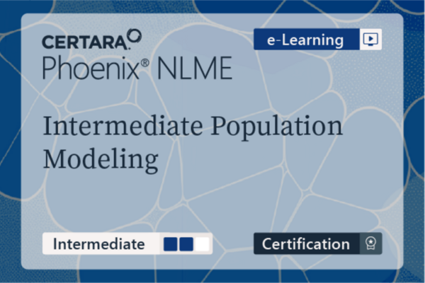 Cost - $575 (Academia $275, Africa/India $150) Certification Course Description The objective of this course is to learn how to perform population PK using Phoenix NLME. Population PK/PD modeling is being used increasingly in regulatory submissions. Population PK modeling can handle sparse data and also data combined from several studies. The population approach estimates the variability between subjects in the PK parameters and can help you understand potential sources of PK variability. Through a series of practical exercises, learners will create population PK models, add covariates to models to help explain and quantify individual variation, and validate their models using bootstrap and VPC. Learners will become familiar with the theory necessary to make effective use of population modeling. You will have access to this course for 3 years. No manual or printed material is associated with this course. Pricing Cost - $575 (Academia $275, Africa/India $150) Users requesting an Academic membership will only be accepted with proof of academic status by using an active academic email address. Users from Africa/India will need to provide Certara University with a copy of their government issued proof of residency. If an email address fails to meet that standard, the individual will be notified and will not be given access to the requested membership type. Course Format, Language and Dates This course format is 'e-learning', which means that you can take the course at your own pace. The course materials include recorded lectures and interactive tasks. You will be asked to carry out tasks in a simulation of Phoenix. You will interact by clicking and entering text. Although it will look and feel like you are interacting with Phoenix, the simulation is not a real instance of Phoenix. It can only go through the task that was assigned. This course audio is in English, with closed captions that can be turned on or off. Certification Exam This course includes a certification exam. To obtain credit for this course and earn a Certara Certification as a PK/PD Modeler using Phoenix WinNonlin version 8.4 or 8.5, candidates need to earn a passing score on the exam. The exam validates proficiency and competence with Maximum Likelihood Models in Phoenix WinNonlin. Exam Details Software: There is no requirement to have the Phoenix NLME™ software installed to take the exam. The exam has interactive questions embedded that simulate the software. Those interactive questions are based on Phoenix NLME 8.4 or 8.5. Grading: To successfully earn the Population Modeler certification, a minimum passing score of 75% must be achieved on both parts of the online accreditation exam. Each registration includes 2 attempts at passing each part of the test. The exam tests 80-90 questions that cover theoretical knowledge of population modeling, and a practical section that evaluates software proficiency with population models in Phoenix NLME. Time Limit: The exam is divided into 2 parts. There is a time limit of 1hr 45min to complete part 1, and 1hr 15min to complete part 2 of the exam. The clock starts counting when the user clicks on 'Start Exam' in each part. Exam Content: Successful candidates should be able to use Phoenix NLME to create population models, including covariate analysis, covariance analysis, model validation, and simulation. Exam topics include: Population PK Theory Data Preparation Exploratory Data Analysis Model Development Covariate Models Covariance Models Model Comparisons Model Validation (VPC and Bootstrap) Reporting Population Model Results Prerequisites and Time Commitment Fundamental knowledge of PK/PD concepts including basic compartmental models. Familiarity with the functionality of Phoenix WinNonlin software. Recommended background courses include: (103-OD) Fundamentals of Pharmacokinetics either (122-LIVE-CERT) or (122-OD-CERT) Phoenix WinNonlin (Part 1) NCA Certification Course either (123-LIVE-CERT) or (123-OD-CERT) Phoenix WinNonlin (Part 2) PK/PD Modeling Certification Course The course provides approximately 6.5 hours of video instruction which includes a practical component that you can do at your own pace. It is expected to take participants about 24+ hours to complete, including time to perform the tasks in Phoenix. Software Phoenix WinNonlin and NLME Participants are expected to have current licenses for both Phoenix WinNonlin and Phoenix NLME. If a 60-day software license is needed one can be provided for an additional fee. Contact us if you want to order a license. Read more