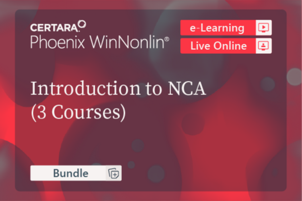 Bundle Cost - $900 ($450 Academia, $225 Africa/India) This bundle is recommended for scientists who want to earn the Certara NCA certification and who are new to pharmacokinetics. Those who successfully complete the certification course will earn the following certification: Certara Certified NCA Analyst using Phoenix WinNonlin Version 8.3 This bundle includes three courses: two conceptual courses (delivered in e-learning format) and one certification course (delivered live online). The certification exams are included in the certification courses. If purchased separately, the three courses would cost $1148, so you can save $248 by purchasing the bundle. Courses Included (see Content Tab for details) (103-OD) Fundamentals of Pharmacokinetics [Conceptual Course] | e-learning format (105-OD) Noncompartmental Data Analysis [Conceptual Course] | e-learning format (122-LIVE-CERT) Phoenix WinNonlin (Part 1) NCA Certification Course | live online format Read more