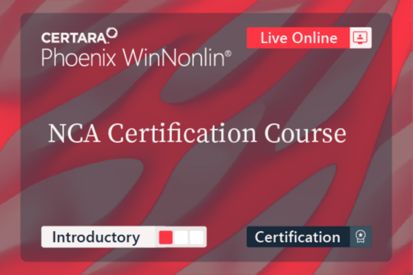 Cost - $550 (Academia $275, Africa/India $150) Certification Course Description In this course you will learn and get certified on the theory and application of non-compartmental analysis (NCA). NCA is used to characterize the kinetics of a compound without assuming a specific compartmental model. You will learn NCA methodology, how to perform NCA using Phoenix WinNonlin software, and how to interpret resulting pharmacokinetic parameters. This course is a comprehensive review of noncompartmental analysis of pharmacokinetic data and will cover the basics through the most complex areas of noncompartmental analysis. Upon successful completion of this course, you will receive an e-badge as an NCA Analyst using Phoenix WinNonlin. This certification is valid for 3 years. Pricing $550 (Academia $275, Africa/India $150) Users requesting an Academic membership will only be accepted with proof of academic status by using an active academic email address. Users from Africa/India will need to provide Certara University with a copy of their government issued proof of residency. If an email address fails to meet that standard, the individual will be notified and will not be given access to the requested membership type. Course Format and Access This course format is an 'On Demand' e-Learning course which means that the course is presented as a series of interactive modules that can be completed on your own schedule. Each module contains a quiz that you must pass to complete the course. You must achieve at least 60% on each quiz to pass it, although you can take as many attempts as necessary to do so. You will have access to this course for 3 years. No manual or printed material is associated with this course. Note that Certara University also offers the content of this course as a live instructor-led course format (122-LIVE) . This is considered a different course. For times and availability for the live course, click here. Language and Course Length This course is delivered in English, with closed captions (which can be turned on/off as desired). The course has a total of approximately 6 hours of interactive content. Learners should plan to spend at least 18 hours to complete the course, plus 3 hours for the certification exam. Prerequisites and Time Commitment There are no pre-requisites for this course although basic understanding of pharmacokinetics is preferred (recommended background: (103-OD) Fundamentals of Pharmacokinetics). Certification This course includes a certification exam. To obtain credit for this course and earn a Certara Certification as an NCA Analyst using Phoenix WinNonlin either version 8.4 or 8.5, candidates need to earn a passing score on the exam. The exam validates proficiency and competence with non-compartmental (NCA) pharmacokinetic (PK) analysis using Phoenix WinNonlin, with version 8.4 or 8.5. A certified NCA analyst can process data, perform exploratory data analysis, calculate NCA parameters, and report results for typical PK study designs in pre-clinical and clinical trials. Exam Details Software: There is no requirement to have the Phoenix WinNonlin™ software installed to take the certification exam. The exam has interactive questions embedded that simulate the software. Those interactive questions are based on Phoenix WinNonlin 8.4 or 8.5. Grading: To successfully earn the NCA Analyst certification, a minimum passing score of 75% must be achieved on both parts of the online accreditation exam. Each registration includes 2 attempts at passing the test. The exam tests 80-90 questions that cover theoretical knowledge of NCA analysis on different types of study designs, and a practical section that evaluates software proficiency by performing tests related to NCA analysis, data processing, and reporting. Time Limit: The exam is divided into 2 parts. There is a total time limit of 1 hr and 45 min to complete part 1 and 75 minutes to complete part 2 of the exam. The clock starts counting when the user clicks on 'Start Exam' in each part. Exam Content: Successful candidates should understand fundamentals of Pharmacokinetics, NCA theory, typical study designs that are often analyzed with NCA, and hands-on experience with Phoenix WinNonlin. Certification topics include: Basic Theory of PK and NCA Phoenix Interface Exploratory Data Analysis - Data Tools and Plots Performing NCA in Phoenix Processing NCA results Non-Parametric Superposition Study Designs Software Phoenix WinNonlinTM Participants are required to have a current license of Phoenix. The exercises can be completed without a license but it is recommended that students practice on their own. Read more