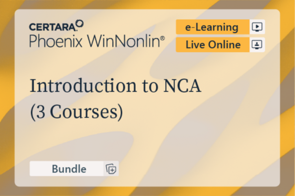 Bundle Cost - $950 ($475 Academia, $450 Africa/India) This bundle is recommended for scientists who want to earn the Certara NCA certification and who are new to pharmacokinetics. Those who successfully complete the certification course will earn the following certification: Certara Certified NCA Analyst using Phoenix WinNonlin Version 8.3 This bundle includes three courses: two conceptual courses (delivered in e-learning format) and one certification course (delivered live online). The certification exams are included in the certification courses. If purchased separately, the three courses would cost $1,275, so you can save $325 by purchasing the bundle. Courses Included (see Content Tab for details) (103-OD) Fundamentals of Pharmacokinetics [Conceptual Course] | e-learning format (105-OD) Noncompartmental Data Analysis [Conceptual Course] | e-learning format (122-LIVE-CERT) Phoenix WinNonlin (Part 1) NCA Certification Course | live online format Read more