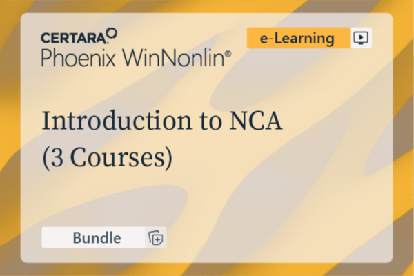 Bundle Cost - $950 ($475 Academia, $450 Africa/India) This bundle is recommended for scientists who want to earn the Certara NCA certification and who are new to pharmacokinetics. Those who successfully complete the certification course will earn the following certification: Certara Certified NCA Analyst using Phoenix WinNonlin Version 8.3 This bundle includes three courses: two conceptual courses and one certification course. All the courses in this bundle are delivered in an e-learning format. The certification exam is included in the certification course. If purchased separately, the three courses would cost $1,275, so you can save $325 by purchasing the bundle. Courses Included (see Content Tab for details) (103-OD) Fundamentals of Pharmacokinetics [Conceptual Course] | e-learning format (105-OD) Noncompartmental Data Analysis [Conceptual Course] | e-learning format (122-OD-CERT) Phoenix WinNonlin (Part 1) NCA Certification Course | e-learning format Read more